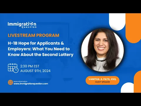 On Friday, August 9th, Immigration Question proudly hosted a highly informative and interactive livestream event. The distinguished Vanitha Patil, Esq., was the featured speaker. The event began at 2:30 PM EST and delved into the H-1B second lottery. It highlighted the significant impact on both applicants and employers.